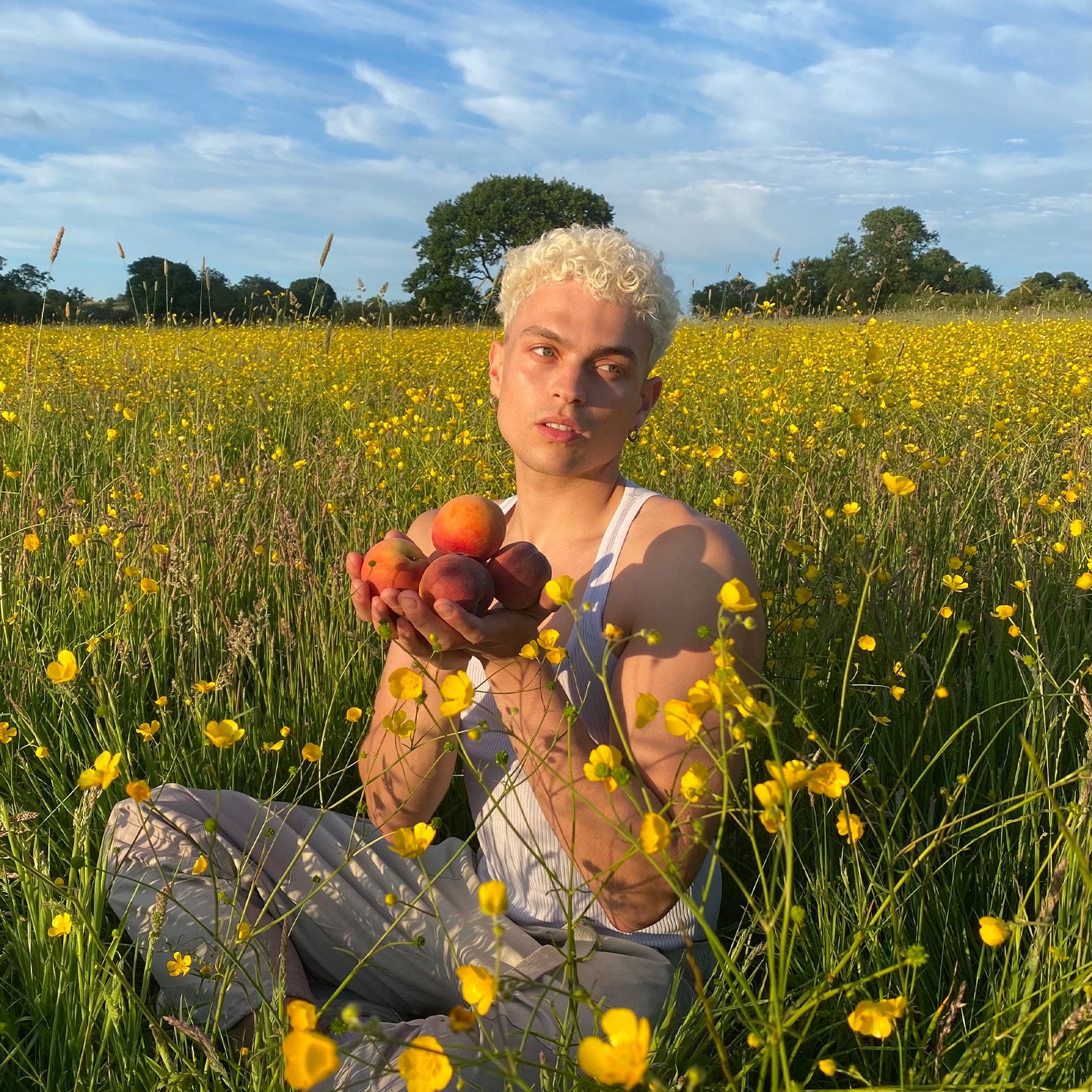 A hot mess, peach-blushed and free.